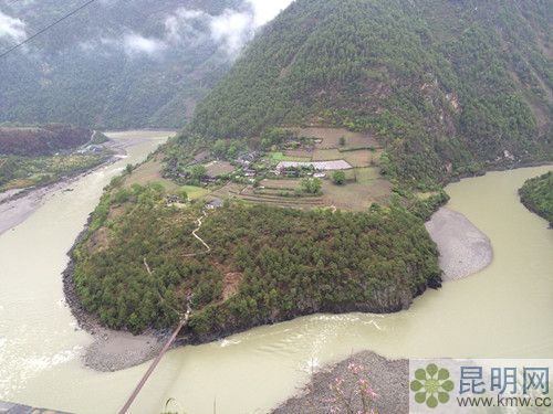 一座山就到了。朝紅橋也是一座吊橋,修建的年代比較早。沿山坡分布著民居,到了這里,再往北就只有馬幫的小路,可以直通西藏察隅。