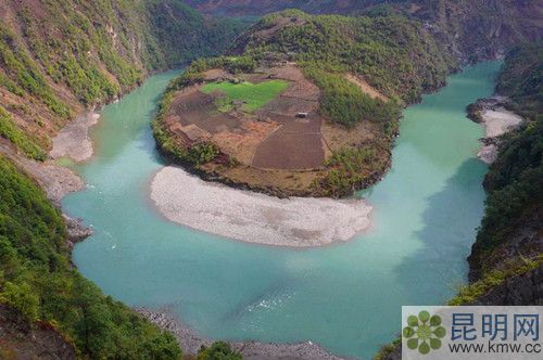 全長1540公里的怒江自青藏高原穿山越谷而來,在滇藏交界處的云南省貢山獨龍族怒族自治縣丙中洛附近轉了個半圓形的彎,被稱為怒江第一灣。這里的江面海拔約1700多米,氣勢磅礴,風光旖旎,水勢緩慢,兩岸風景獨好。東西往來的人常在此泛舟或坐溜索過江。