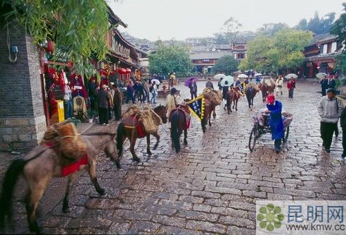 從西藏、中甸方向下來(lái)的藏民們到達(dá)麗江海拔兩千四五百米的高度后,因?yàn)榄h(huán)境、氣候、風(fēng)俗、語(yǔ)言等不同難以再往下。而內(nèi)地的漢人們到達(dá)麗江后也很難再走向更高的海拔。曾經(jīng)的麗江是馬幫的天下,繁榮的程度讓你難以想象,據(jù)說(shuō)尾騾在七八公里外的“黃山”,頭騾已經(jīng)到了四方街。
