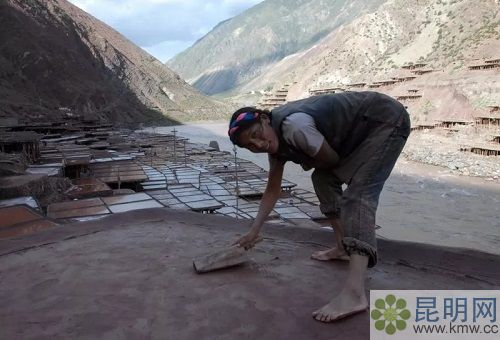 女人們按照最原始的方式一天到晚重復(fù)背水、曬鹽、收鹽。每天至少要背六七十趟,按照每次負(fù)重20公斤,每天至少承重一噸。3000多塊鹽田就是這些婦女和她們的家賴以生存的主要依靠。但是,鹽井的女人們對(duì)于生活卻有著樂(lè)觀豁達(dá)的心態(tài),她們知道,她們祖祖輩輩傳承下來(lái)日復(fù)一日的工作是為了她們的孩子、丈夫、家庭。
