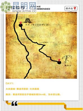 大關縣城—10km—黃連河景區—10km—大關縣城