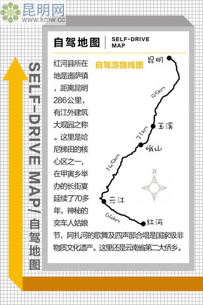 紅河縣所在地是迤薩鎮(zhèn),距離昆明286公里,有江外建筑大觀園之稱。這里是哈尼梯田的核心區(qū)之一,在甲寅鄉(xiāng)舉辦的長街宴延續(xù)了70多年,神秘的奕車人姑娘節(jié),阿扎河的歌舞及四聲部合唱是國家級非物質(zhì)文化遺產(chǎn)。這里還是云南省第二大僑鄉(xiāng)。