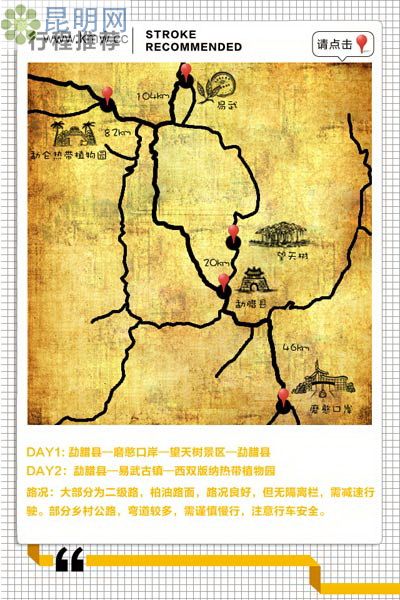 DAY1:勐臘縣—磨憨口岸(46公里,1小時)—望天樹景區(64公里,1.5小時)—勐臘縣(20公里,40分鐘)