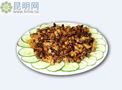 芒市少數(shù)民族好吃昆蟲宴,而蜂蛹則是不可或缺的上等美食。蜂蛹的吃法很簡單,將野生的蜂蛹及成年蜂用菜油進(jìn)行煎炸,炸到變脆的時(shí)候起鍋,撒上鹽就可以食用。炸蜂蛹香味遠(yuǎn)溢,幾百米外的人都可以聞到。
