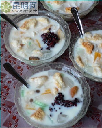 紫米泡魯達(dá),到芒市不得不吃的甜品。牛奶、西米、紫米糯米飯以及煉乳和椰絲,配合成香甜清新的味道。