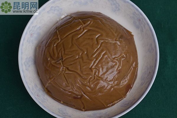 制作工藝精細,選料認真,以上等糯米為原料,把其水磨成漿后,摻入紅糖或白糖、芝麻、玫瑰、花生仁、火腿等物混合拌勻后,定量注入用整張鮮豆腐皮墊底的碗中,經過攝氏150度高溫蒸熟、冷卻后經涂油加印即可上市出售。具有表面光滑,晶瑩油潤,品質細膩,味香清甜,柔韌適口,久食不膩等特點,至今有300多年的盛譽。