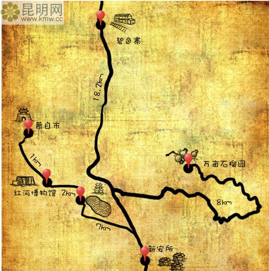 過橋米線的發源地,一望無際的萬畝石榴園,滇越鐵路最美的小鎮碧色寨,浪漫的法式風情花園。
