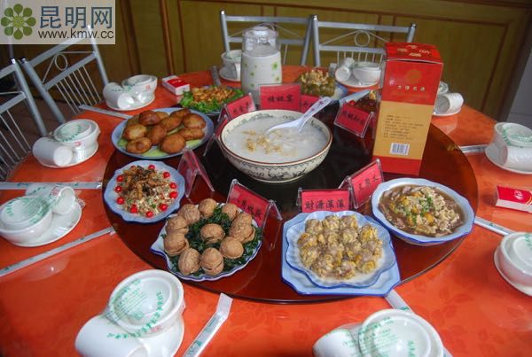 漾濞縣核桃節上的饕餮大餐,主要菜肴,包括冷碟、熱炒、大菜、羹湯以及點心餡料統統皆以核桃為主料烹制而成,核桃的鮮、香、甜讓味蕾感受很不一般。