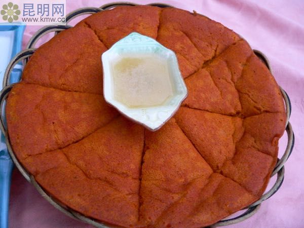 漾濞彝家人的傳統小吃,也是招待貴客的食品。第一道為“蜂蜜核桃茶”,第二道蜜為“蕎粑粑蘸蜂蜜”,第三道為“核桃蘸蜂蜜”。