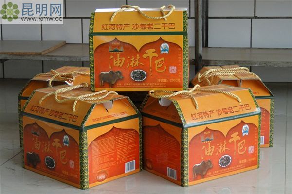 選用自然草場飼養(yǎng)的本地壯黃牛肉,按穆斯林的傳統(tǒng)方法宰后,選擇后腿精肉進行腌制風干,之后把干巴解小,配上作料,用精煉菜油浸炸,起鍋后連油帶干巴一起用建水紫陶罐封裝。干巴肉絲細膩、酥軟、回甜,有韌性但不塞牙。