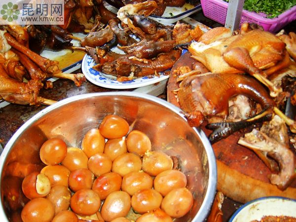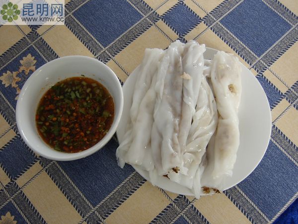 位于個舊的紅炮臺廣場,一碗被切成塊狀的卷粉,在一碗美味可口的佐料里涮一下,入口滑膩,再配上燒烤,真的可以說是回味無窮了。
