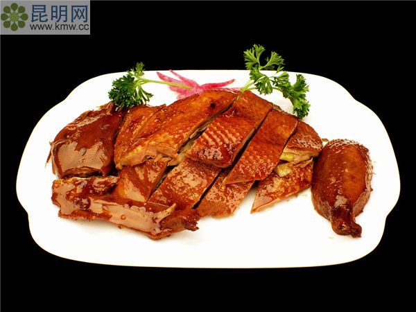 秉承南京咸水鴨的技藝,加多種中草藥,以滇池麻鴨為原料精心制成,香酥可口,肥嫩不膩,香而不咸。