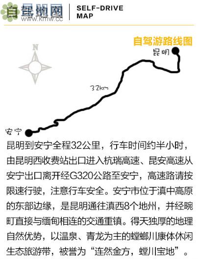 安寧距昆明32公里,因境內被譽為“天下第一湯”的安寧溫泉而得名。僅半個多小時變可抵達的便捷交通,讓昆明人將這里視為“城市后花園”。區內山色蔥籠、風光秀麗,溫泉資源充足,富含礦物質,水質極佳。主要景點包括曹溪寺、摩巖石刻長廊、法華寺石窟等,還有數不勝數的特色農家樂,訪古跡、泡溫泉、享美食,一站搞定。