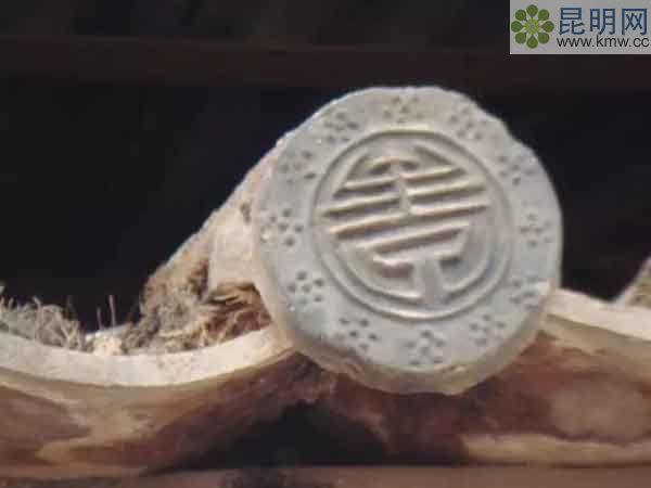 昆明地區(qū)“一顆印”式民居建筑的瓦當(dāng)圖案多為花草紋,幾何紋,動物紋、漢字紋、回紋等。瓦當(dāng)是屋面上覆蓋瓦縫的筒瓦其最下面一塊圓形的端頭裝飾,也稱“勾頭”。據(jù)考古調(diào)查資料顯示,瓦當(dāng)早在西周晚期就出現(xiàn)了,到秦漢時已很常見。到隋唐時期,其紋飾圖案已較為豐富。明清時,瓦當(dāng)藝術(shù)繼承了前人的多數(shù)圖案,但也隨著時代的發(fā)展演變了許多新的圖案,作為各地建筑中瓦當(dāng)圖案又具有一定的地域特色。