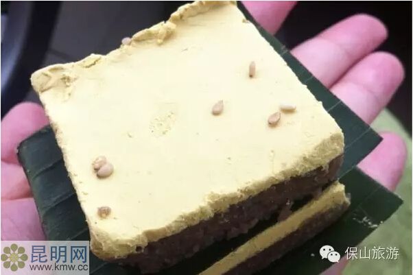 其實松花糕不是什么佳肴,而是一種采用天然的松花粉加紅豆做成的小吃(當然也有用黃豆的)。松花粉被科學界譽為天然食品之冠,富于營養(yǎng),其中蛋白質(zhì)含量為牛肉和雞蛋的七倍,而且以游離氨基酸的形式存在,易被消化吸收。它對各種疾病有奇妙的功能。常食某些花粉對貧血、腦功能紊亂、用腦過度和幼兒大腦遲鈍、毛細管強度不足等有療效。更有強筋健骨、增強勞動耐力、增進食欲和延年益壽的功能。松花糕,最上面一層是厚厚的黃色天然松花粉,松花粉上面撒有一些芝麻。下面一層褐紅色的是夾著紅豆碎塊的紅豆沙。再下一層黃色的松花粉和褐紅色的豆沙,最下面一層是制糕粉。騰沖當?shù)厝说乃苫ǜ馐且话逡话宓刈龀鰜淼模恳话宕蠹s30×60公分大小,再用小刀劃成3×3公分左右的小塊,每塊也就半公分多厚。它整整齊齊的擺在一只淺底的大木盒子里,上面用一張塑料薄膜蓋著。有食客買時,攤主就會拿出一只小鋁皮鏟子,小心翼翼的鏟起幾塊。為了保證松花糕的新鮮,攤主每天只做一盒,賣完便回家,第二天再做再賣。