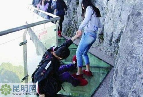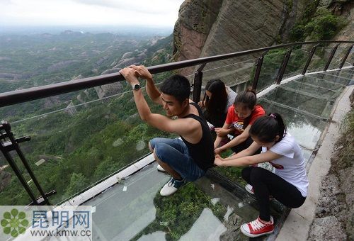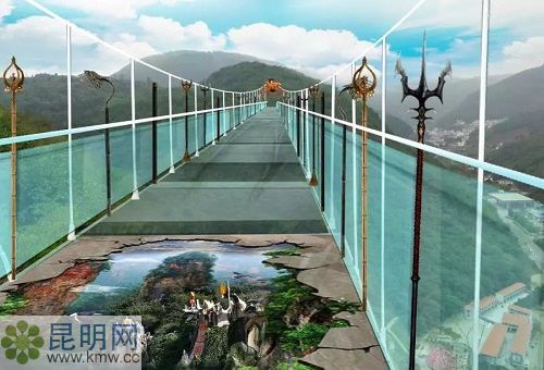 7月14日正式營業的昆明西游洞風景區高空5D玻璃橋,全長250米。橋面采用了5D技術,每走一步都伴隨著玻璃碎裂的畫面和音效,加倍的刺激。
