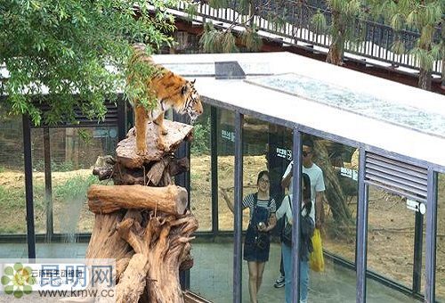 云南野生動物園的玻璃通道,雖然沒有位于高空,但是老虎就在身后,夠不夠刺激?整條玻璃通道采用了專門為老虎設計的防爆破玻璃,能夠承受4000公斤的沖擊力,在通道內非常安全,不用擔心玻璃的安全性。