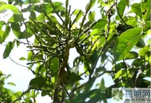 云南省普洱景邁山,除了觀萬畝茶園,品千年茶湯外,還有一大景觀就是吸收了千年古茶靈氣與精華,藥用價值豐富的古茶樹上的寄生植物“螃蟹腳”。什么是螃蟹腳?螃蟹腳又名:楓香槲寄生,扁枝槲寄生,桑寄生科、槲寄生屬植物螃蟹腳是一種寄生在樹齡較高的喬木茶樹上的寄生物。螃蟹腳為綠色(采摘曬干后變成棕黃色),形狀像小珊瑚,帶毫,如蟹足,故被當地人稱為“螃蟹腳”。