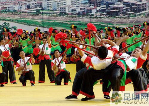 值得一提的是云南的民族舞蹈。云南因為少數民族眾多,各民族的特色舞蹈也是歷史悠久、種類繁多。比如彝族的阿細跳月、煙盒舞、羅作舞、花鼓舞,傣族的孔雀舞、象腳鼓舞,景頗族的目腦縱歌,哈尼族的白鷴舞、扇子舞、扭鼓舞,白族的霸王鞭、雙飛燕,拉祜族的蘆笙舞,納西族的哦熱熱、東巴舞,藏族的鍋莊、弦子,瑤族的銅鈴舞,苗族的跳蘆笙,怒族的生產舞,傈僳族的琵琶舞,布朗族的大鼓舞,基諾族的竹筒舞,阿昌族的登娥羅,德昂族的水鼓舞,獨龍族的剽牛舞,蒙古族的齊納各早,以及回族歌舞劇回龍,等等等等。