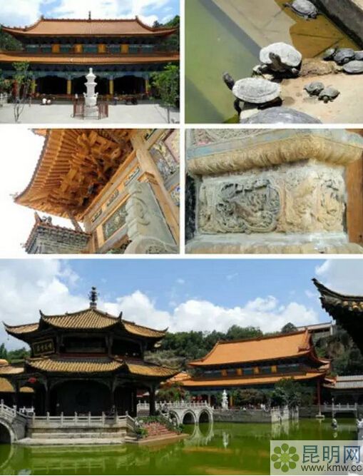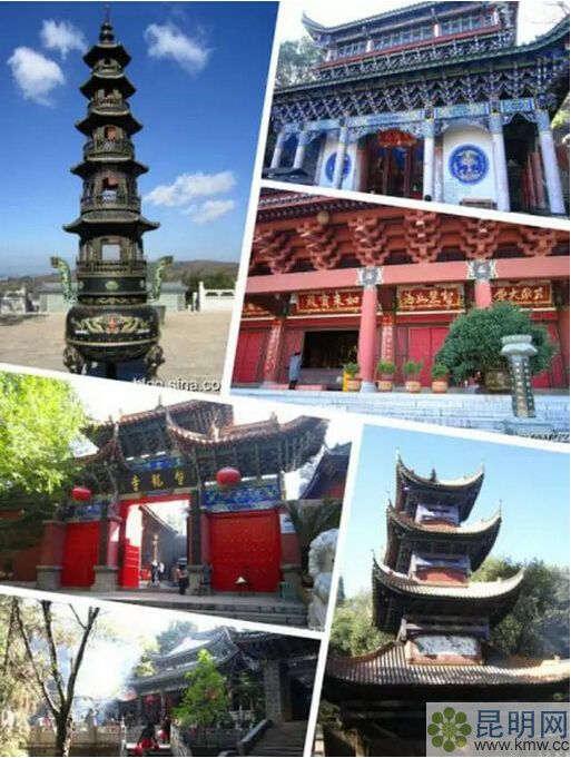盤龍寺觀廟宇依山勢構建,山門內有一、二、三天門,迎仙橋、唾佛殿呂祖殿、祖師殿、大雄寶殿、玉皇閣、伽藍殿、藥師殿等20多院,供奉釋、道、儒三教諸神,尤以盤龍祖師殿、藥師殿、觀音殿香火最盛。寺宇四周林木繁茂,以茶花、松柏著名。原有萬松寺,現建高大的觀海樓登高可遠眺滇池風光。盤龍寺環境極其清幽,每年七月十七日和八月十八日為盤龍廟會,游人眾多,是人們休閑覽勝旅游勝地。