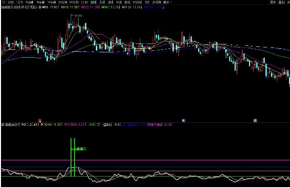 DRAWTEXT(CROSS(ROC, 第二超買線),50,'關(guān)注黑馬'),COLOR00FF0F;