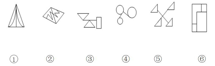 例題:把下面的六個圖形分為兩類,使每一類圖形都有